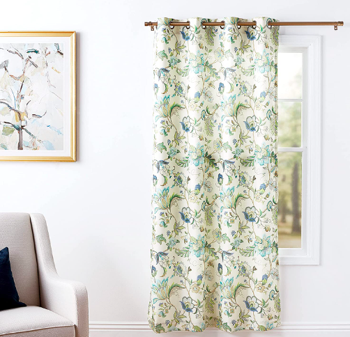 My most treasured find of all were the curtain dupes I found on Amazon. I originally fell in love with the below Anthro, Perla Curtains (see below screenshot), and I thought these would give my office the pop of color it needed to set the tone of the room. I really liked these, but I hated the idea of paying $130+ per panel. I needed four panels for my room, so that would have cost me $520 all in. The price was not negotiable, so I had to keep hunting.